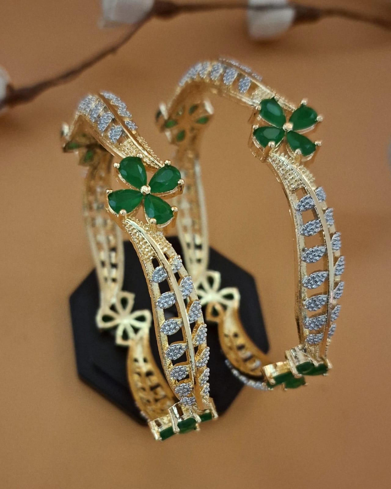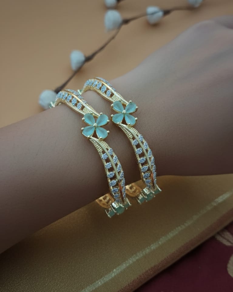 Product Name:- Zevarly Indrati Floral AD Two Tone Bangles |