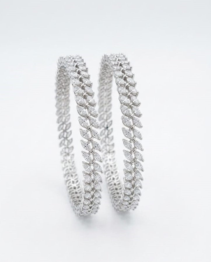 Elevate your elegance with Zevarly's White AD/CZ Bangles, crafted from high-quality alloy with a stunning silver plating. This set of 2 pieces is designed for timeless sophistication. Easy to maintain—simply wipe with a clean cloth to keep them shining.