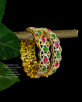 Enhance your elegance with Zevarly's AD/CZ White Bangles. Crafted from alloy with a radiant gold plating, this set of two exudes timeless charm. Keep them sparkling by wiping with a clean cloth.
